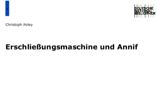 13:30 Uhr bis 17:00 Uhr | Christoph Poley • Deutsche Nationalbibliothek Workshop EMa Inside - Daten, Prozesse und Modelle für die automatische InhaltserschließungÜberblick | |