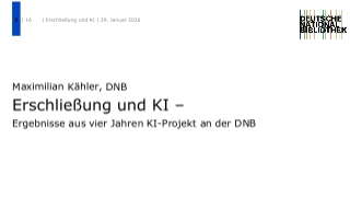 | 14:00 Uhr | Maximilian Kähler • Deutsche Nationalbibliothek Ergebnisse aus vier Jahren KI-Projekt an der DNBAbstract | |